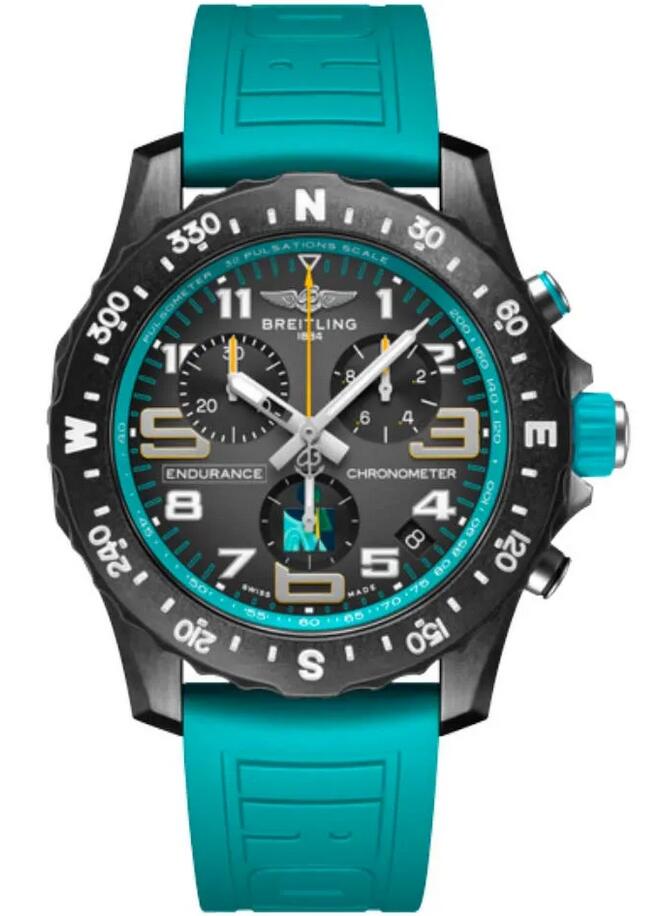 There’s the 1:1 replica Breitling Endurance Pro Ironman 70.3 World Championship watches in turquoise. The Ironman 70.3 triathlon is Ironman light, in a sense, since it cuts down the overall distance by half for the lot who might find going the whole hog a bit too time and ligament-consuming. A bright turquoise chapter ring pops out from a dark gray dial and bezel. While the case is made of Breitling’s proprietary Breitlight composite, the case is made of anthracite, lending both the AAA luxury Breitling fake watches a very light-yet-robust quality.